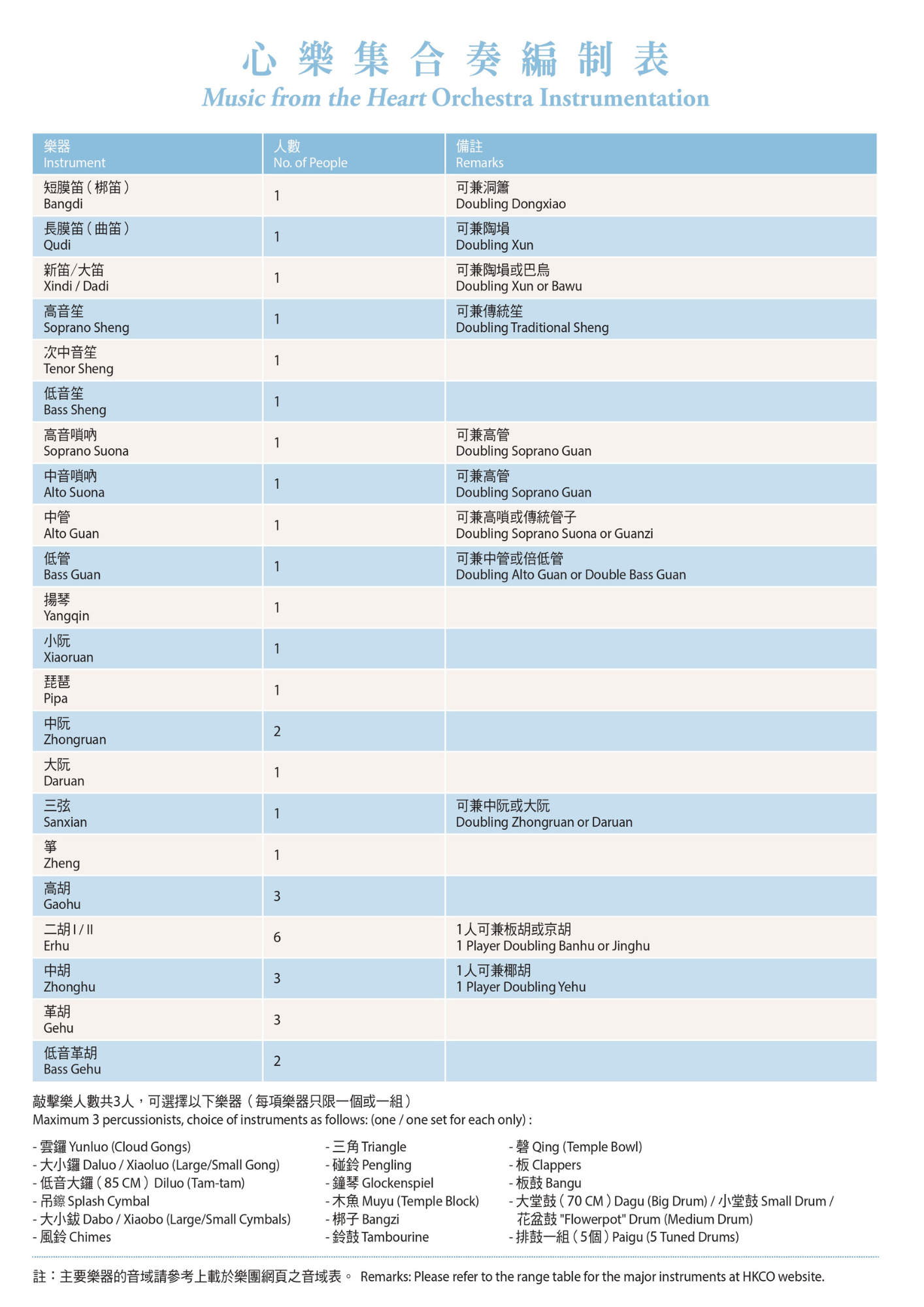Hong Kong Chinese OrchestraRequirements: Ensemble music